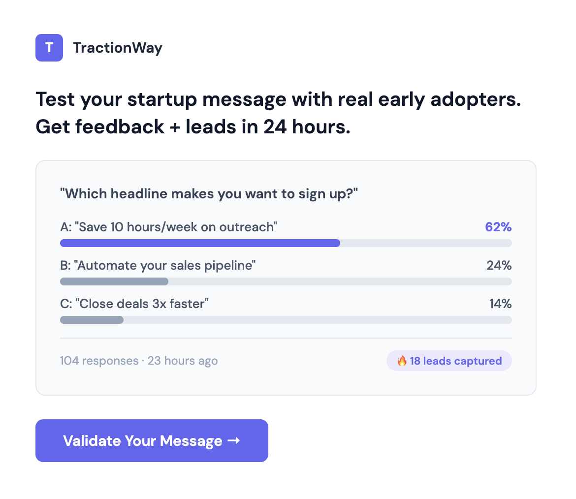 Find out if people actually want what you're building β or why your landing page isn't converting. Poll real early adopters, get action-based signals and warm leads in 24 hours.